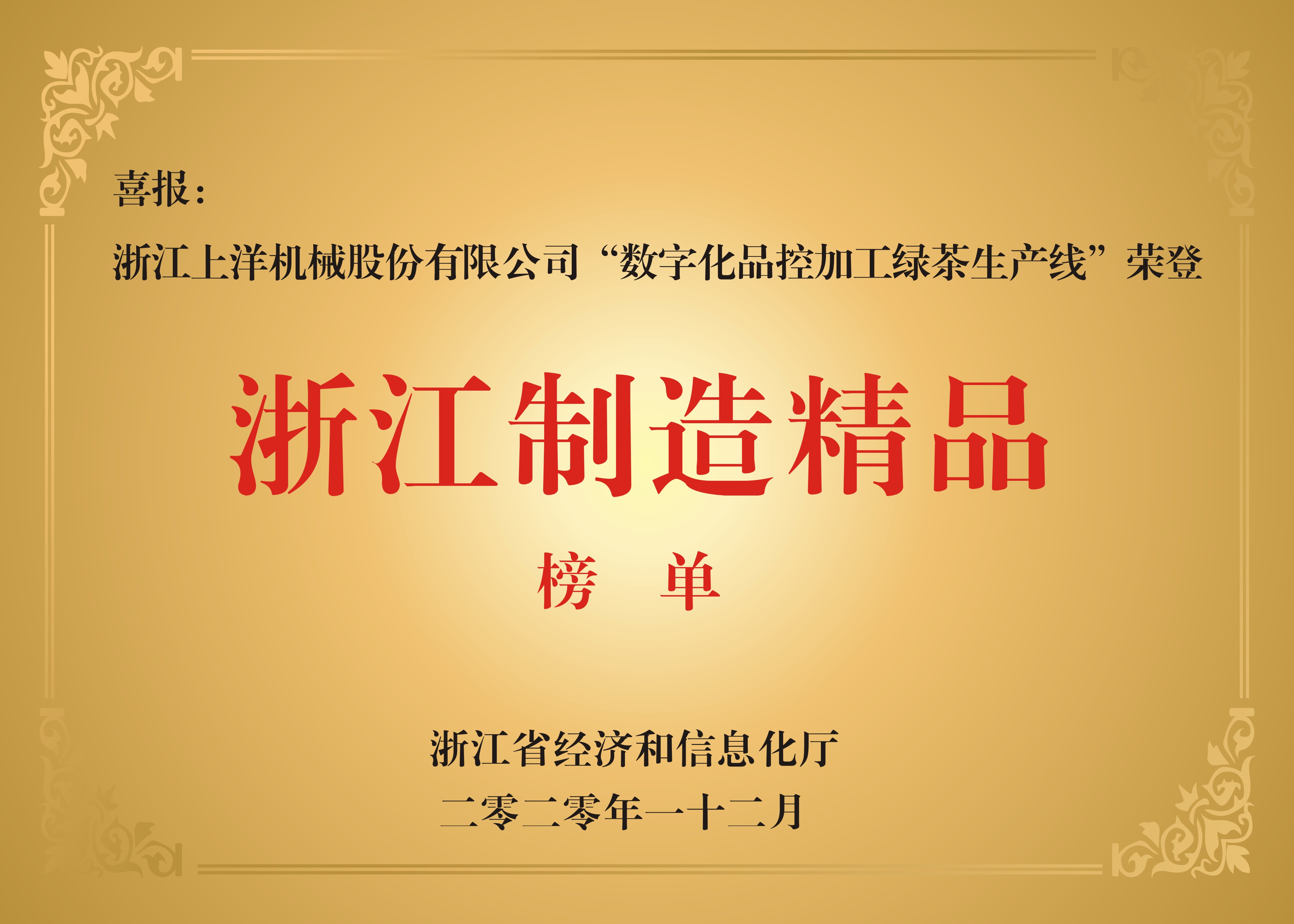 2020年數(shù)字化品控綠茶生產(chǎn)線榮登浙江制造精品榜單