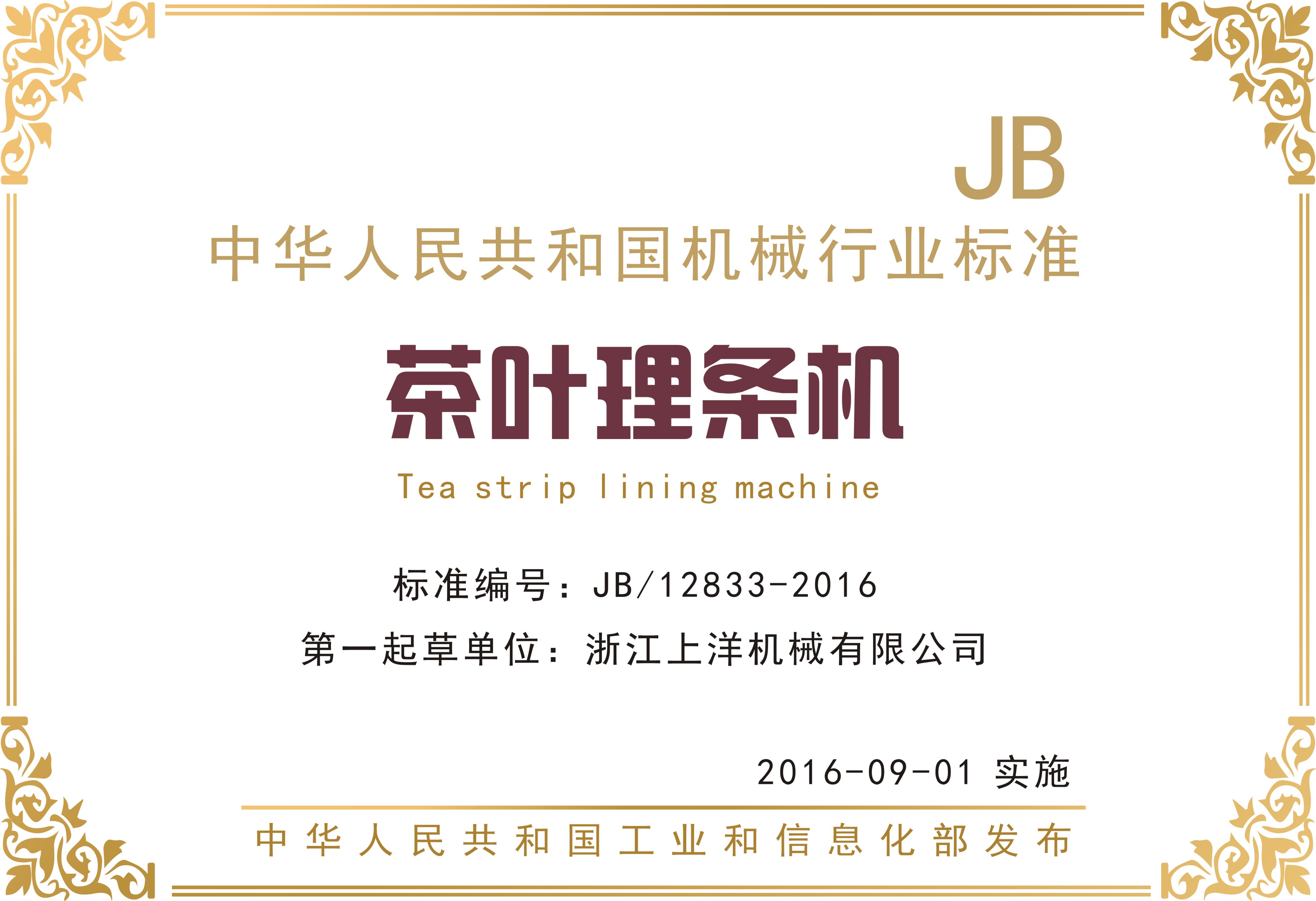 行業(yè)標準3、茶葉理條機-第一起草單位