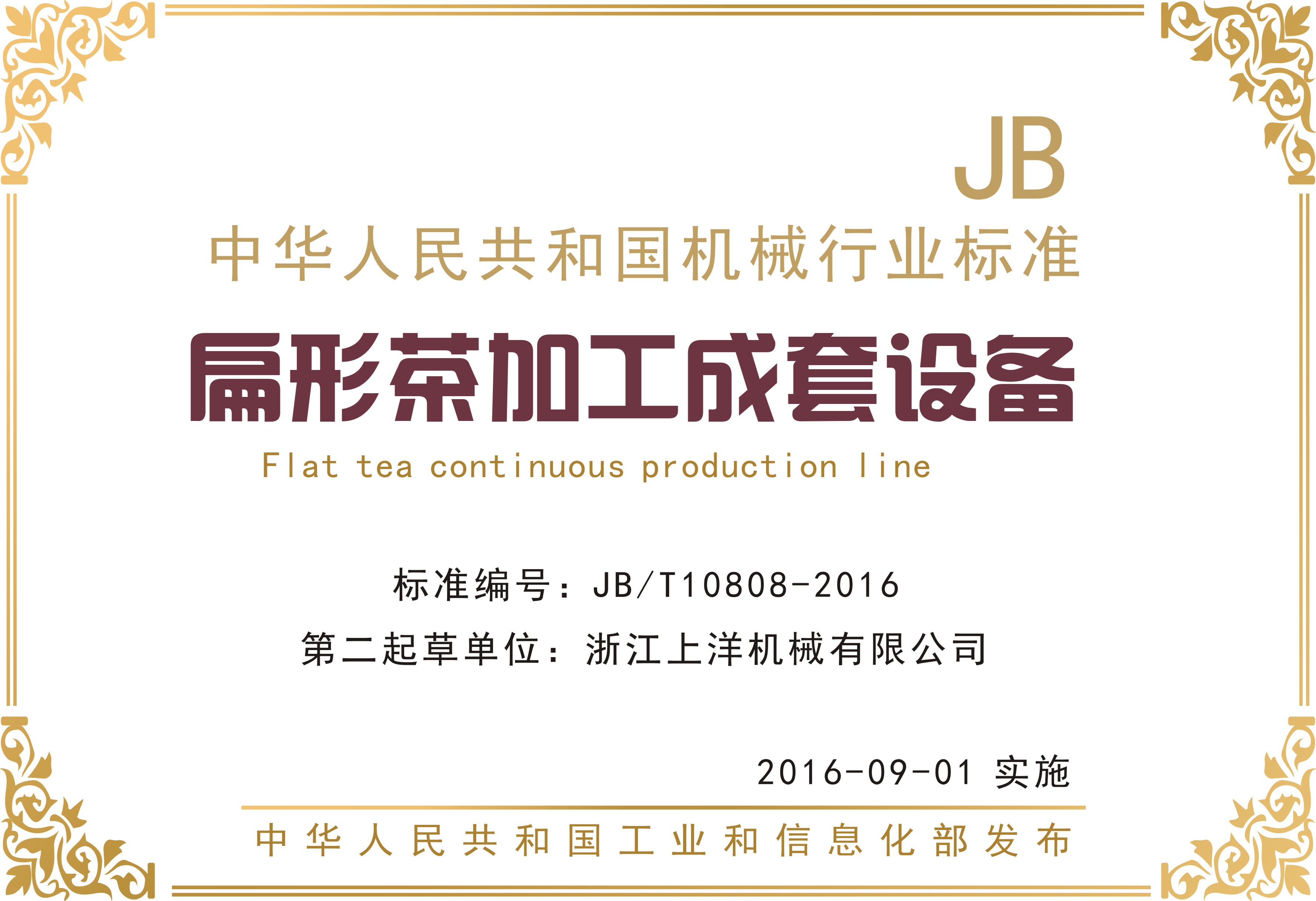 行業(yè)標準1、扁形茶葉加工成套設(shè)備-第二起草單位