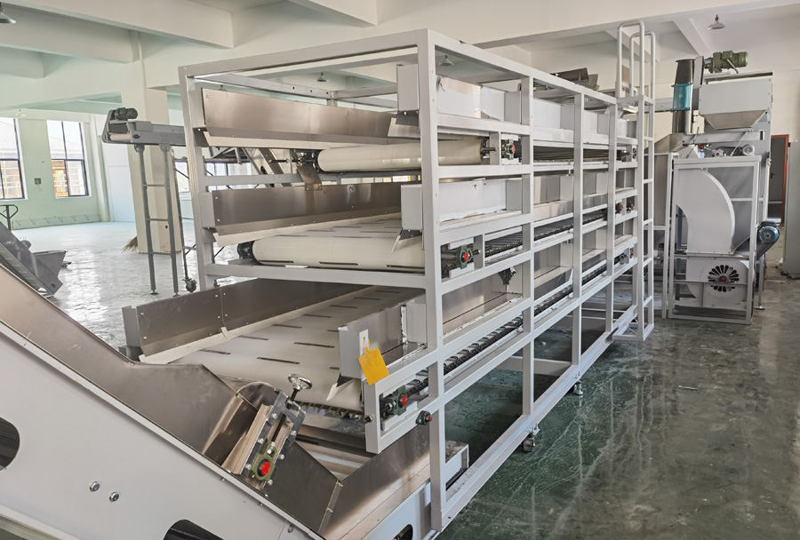 核心優點:走水均勻,降低茶葉破損率,可增設空調通過改變環境條件加速回潮,便于下道炒干做型工序加工,整機回潮時間40-120分鐘可調,是茶葉連續化加工的必備工序。