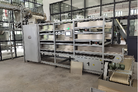 作業原理:機組采用多層、移動行車布料,模擬自然回潮走水原理,運行速度先快后慢、先涼后回、先薄再厚、先軟再塑,達到水分均勻的效果。